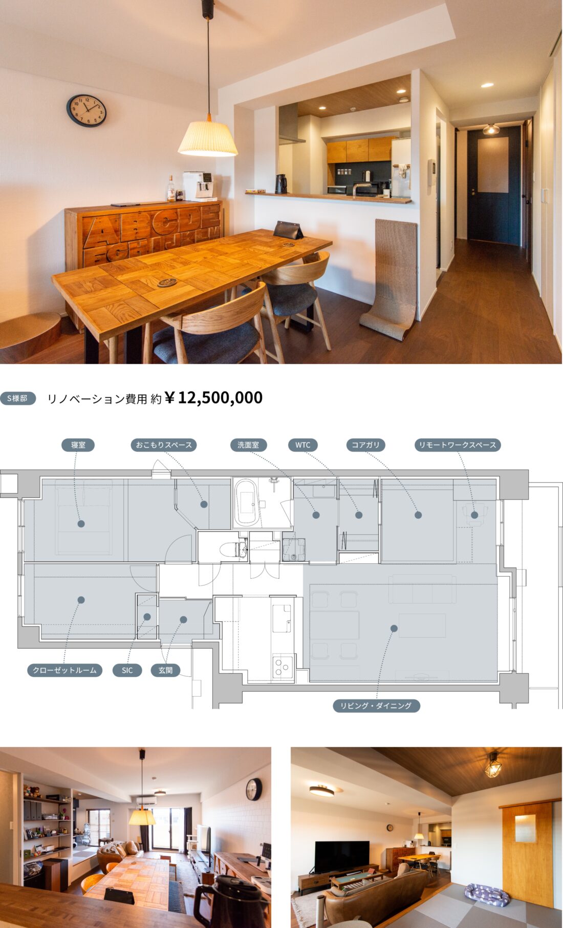 好きなことをお仕事にされ、充実した日々をお過ごしのSさん夫妻。以前のお住まいは騒音など立地環境が悪く、ゆっくり眠れてくつろげるお住まいを探していました。いつか家を持ちたい希望があったこともあり、繁忙期の合間のここしかない!というタイミングで家購入+リノベーションを決意。念願だった猫ちゃん2匹を家族に迎え、穏やかな暮らしを手に入れたお二人の、テーマある世界観が素敵なリノベーションです。