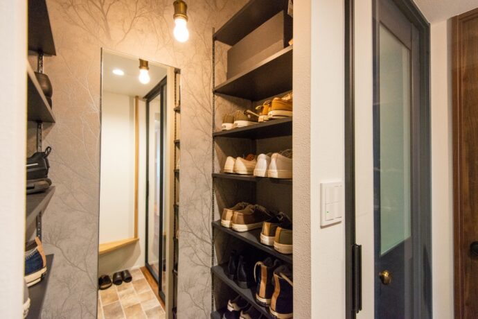 ファッションがお好きなお二人のご要望でSICの壁には姿見を設置、靴まで含めたお出かけ前チェックができます。