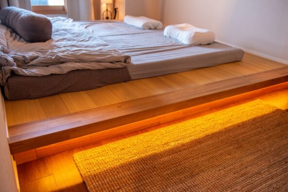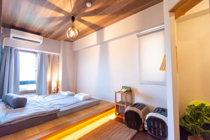 寝室に造作した小上がりベッド、ポイントは素材の「桐」です。