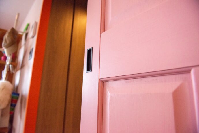 「扉開けたときに色が変わるって、めっちゃ可愛いなって思っていたんです。このピンクの扉はDIYで塗ったんですが、まだ既存のままの扉もあるので、そのうち全部塗り直したいですね。」と奥様。